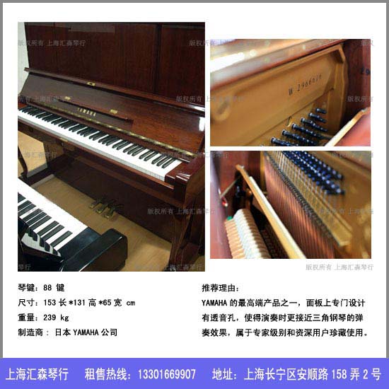 該琴屬于YAMAHA彩色鋼琴的旗艦產品之一,亮光木紋咖啡色的琴身異常高貴,面板上有專門設計的透音孔,使得演奏效果接近三角鋼琴的音響特質,是YAMAHA鋼琴中不可多得的收藏產品之一。